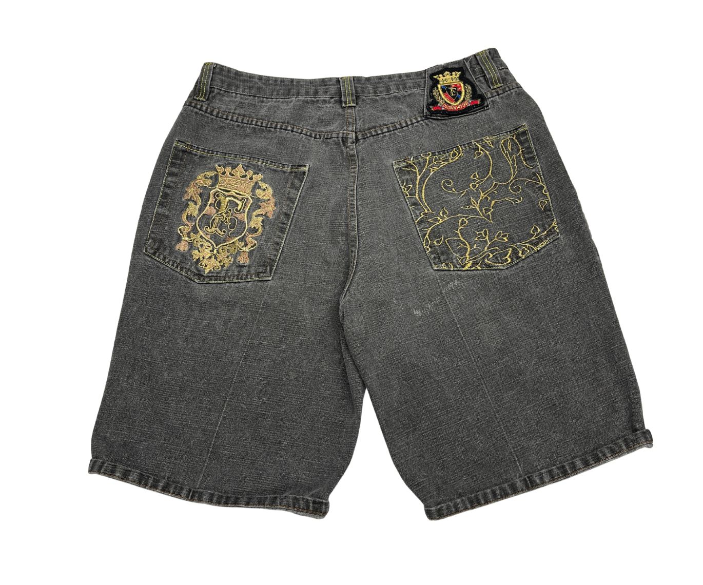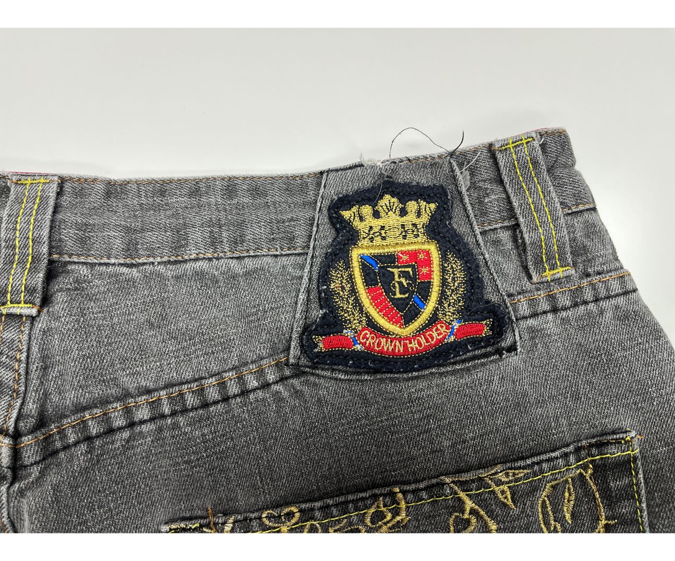 Authentic Crown Holder Men’s Denim Shorts with Embroidery Hip Hop Style Size 36