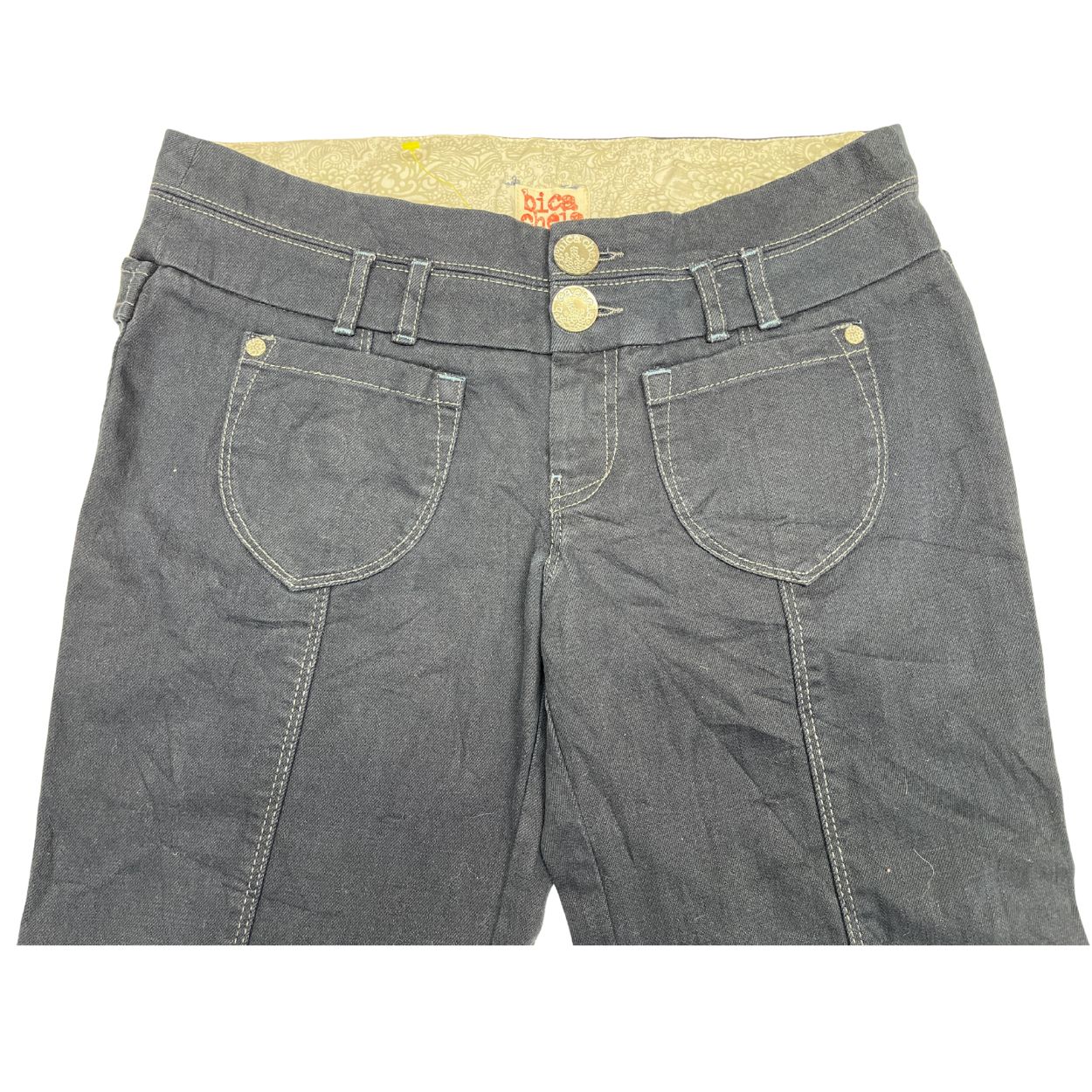Bica Chela Women’s Bell Pants – Navy Blue Cotton Canvas Wide Leg – Size 30