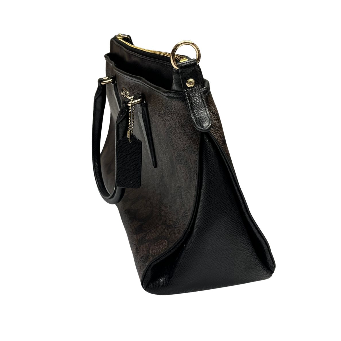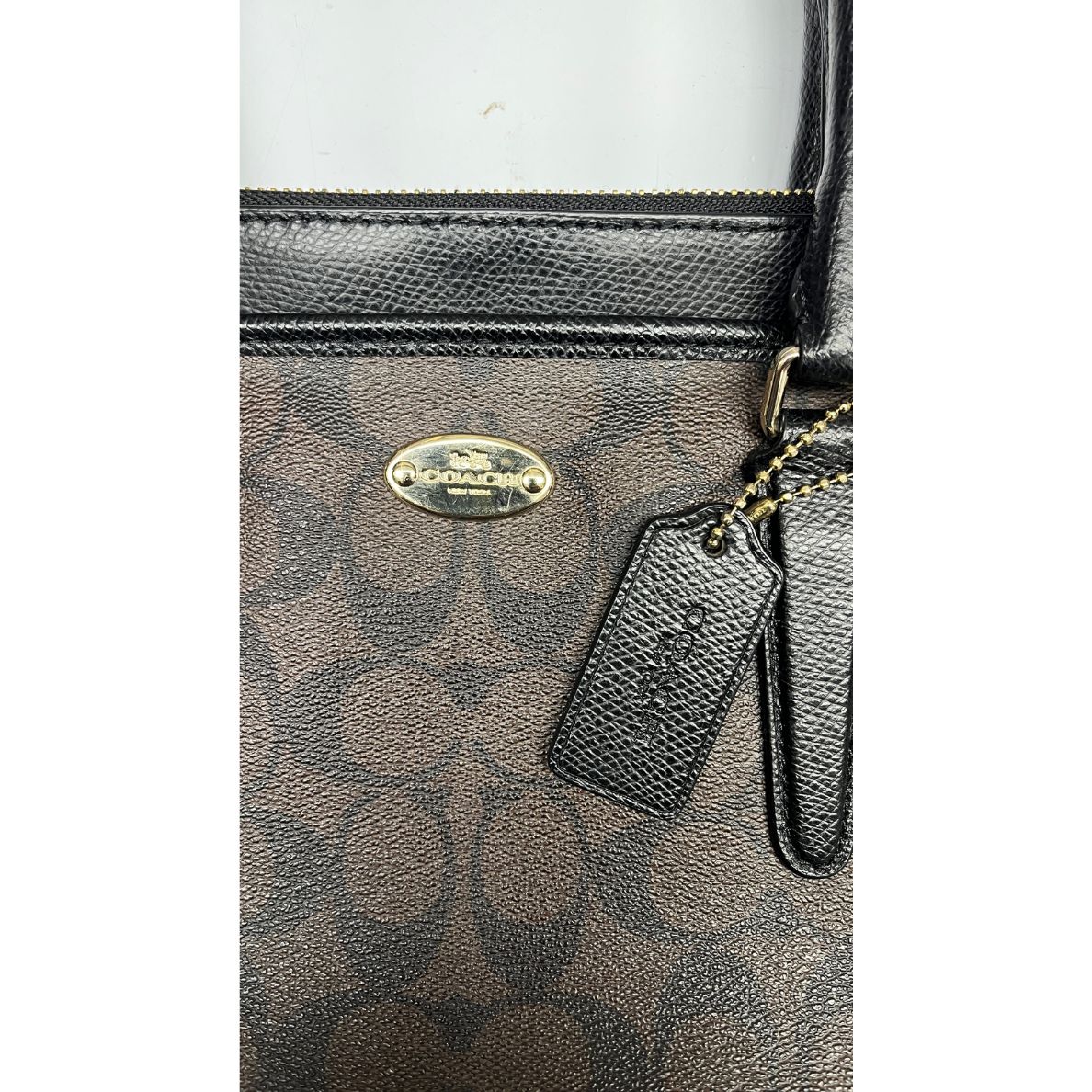 / COACH Black/Brown Signature Coated Canvas Morgan Tote bag