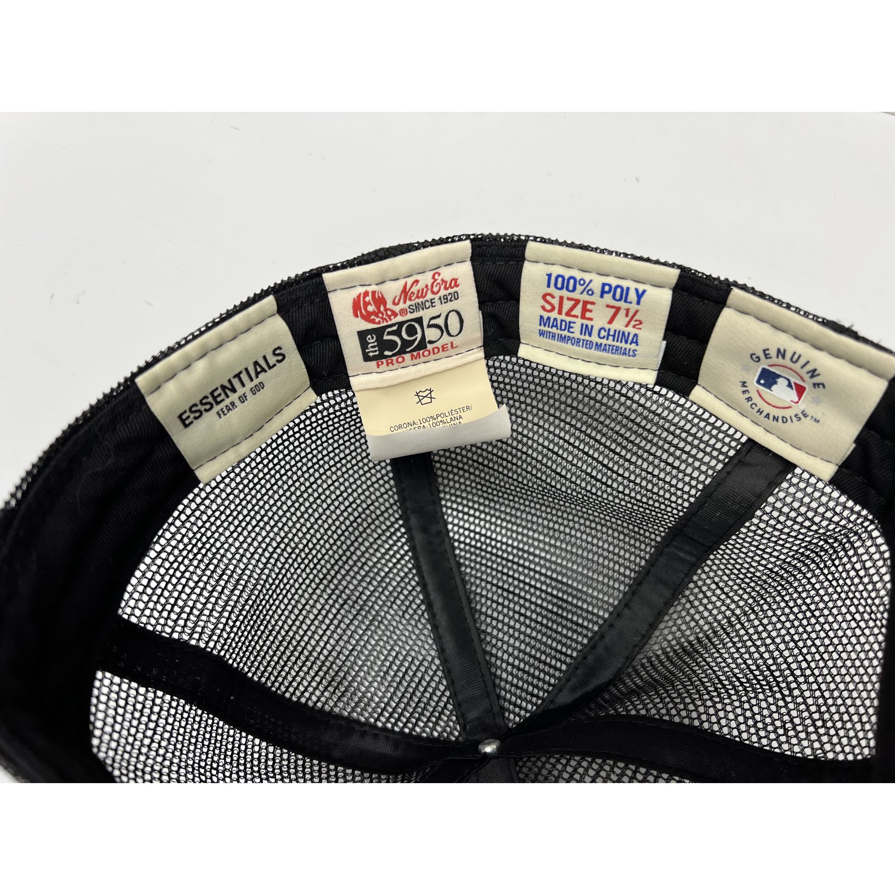 / Fear of God Essentials x New Era 59FIFTY Black Mesh Fitted Hat Rare Sz 7 1/2