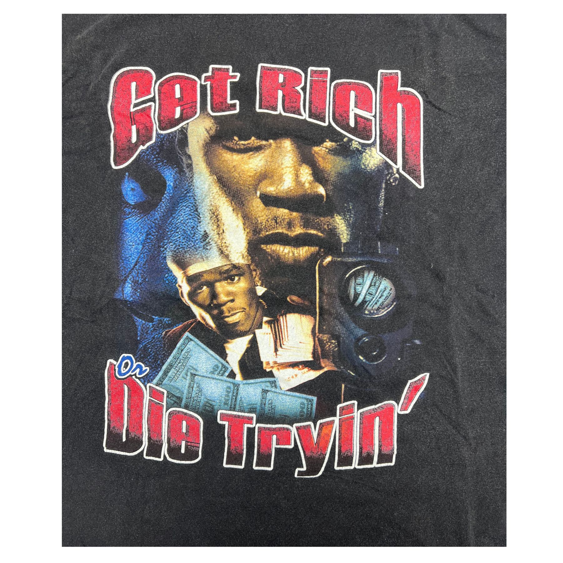 Rare Vintage 50 Cent ‘Get Rich or Die Tryin’ T-Shirt Front and Back graphic XL