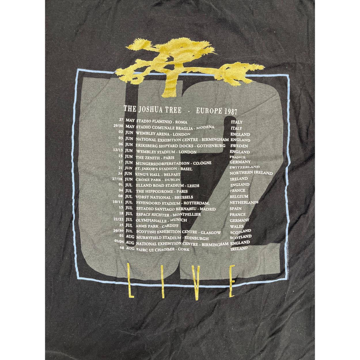 Rare Vintage U2 T-Shirt The Joshua Tree 1987 Europe Concert Tour – Size XL