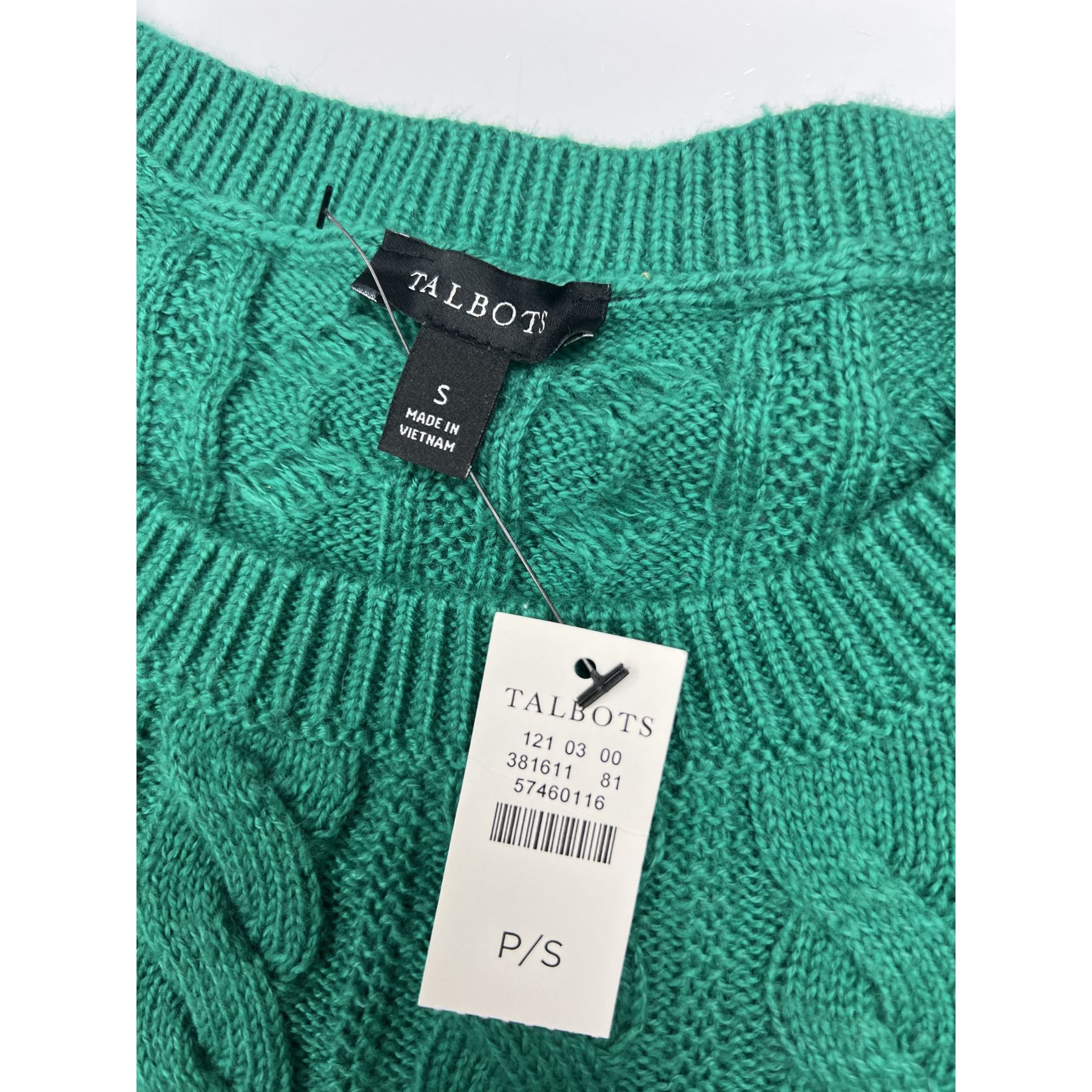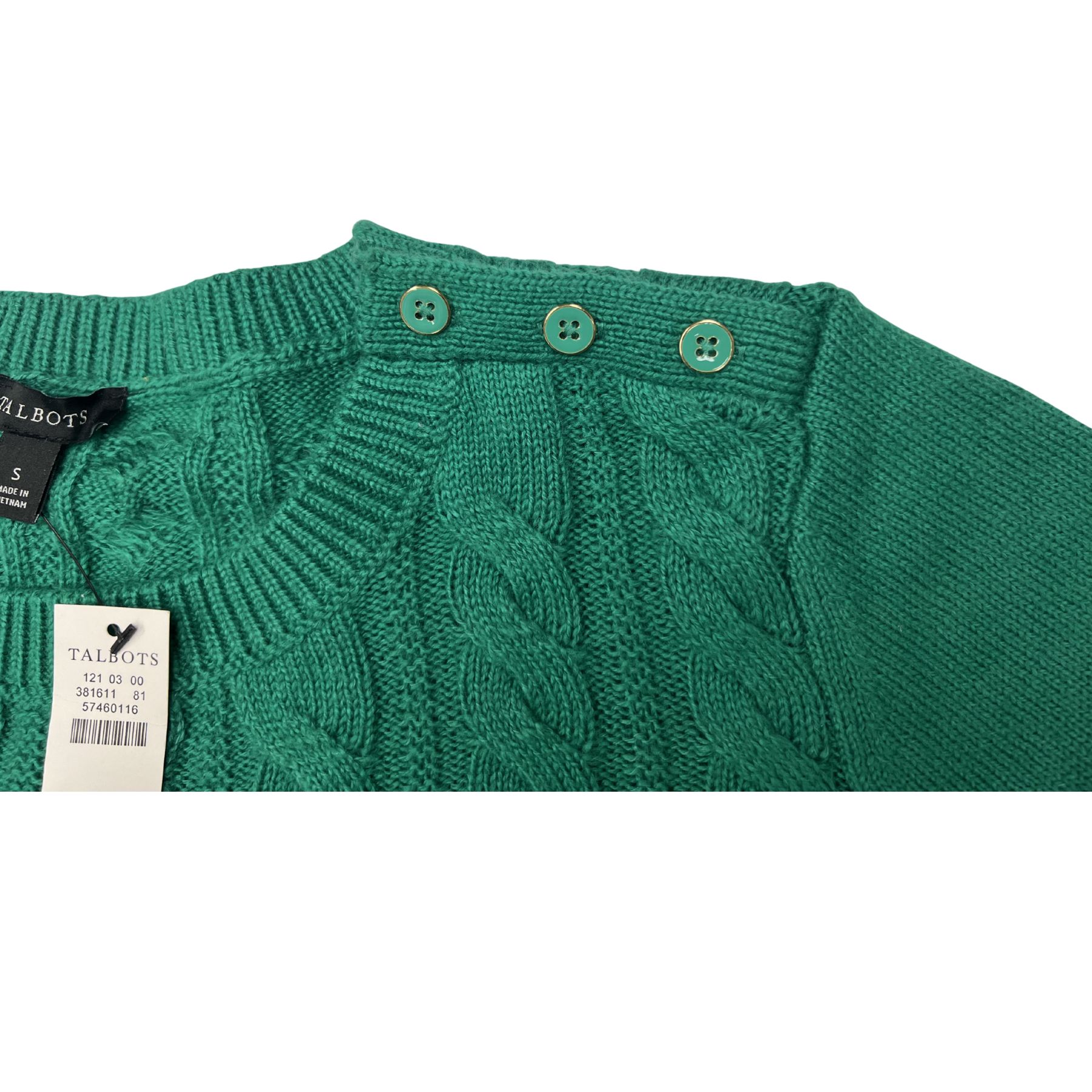 Talbots Sweater Womens S Cable Knit Crewneck Cotton Blend Button Detail NWT