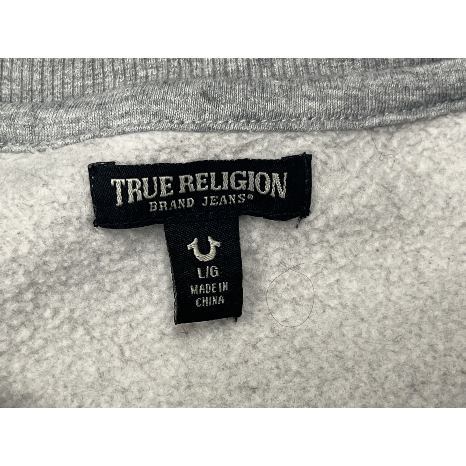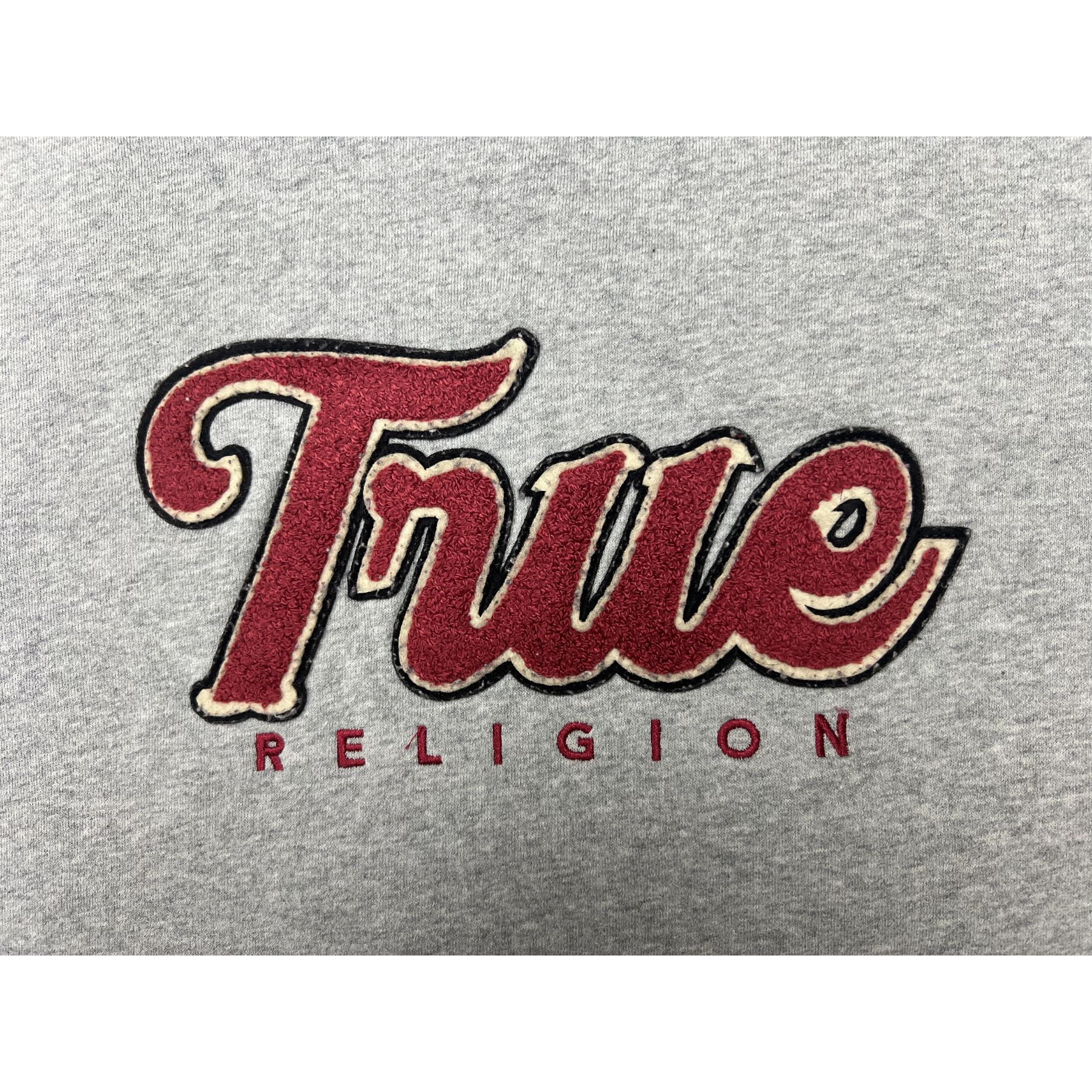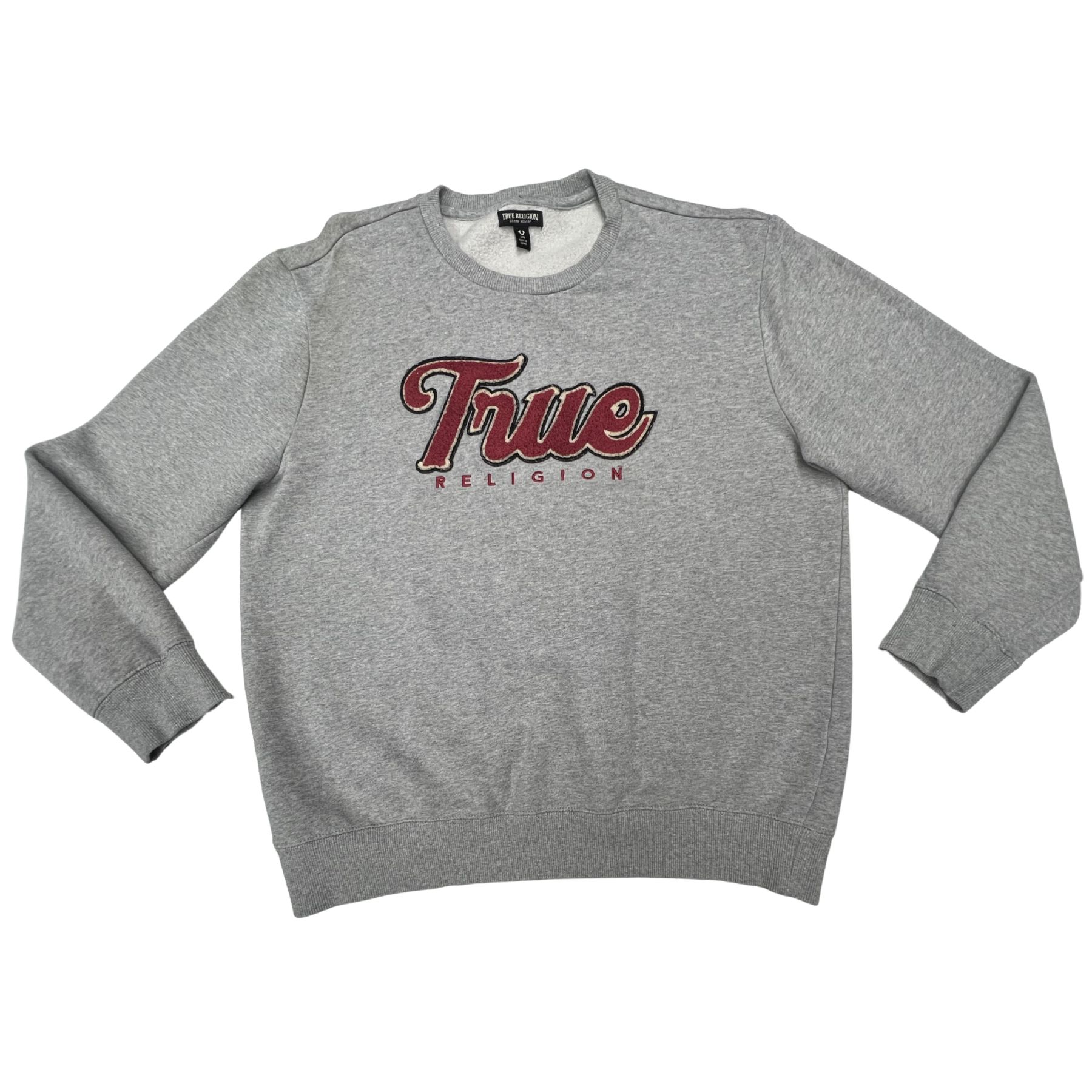 True Religion Grey Crewneck Sweatshirt Embroidered TRUE Patch Collegiate
