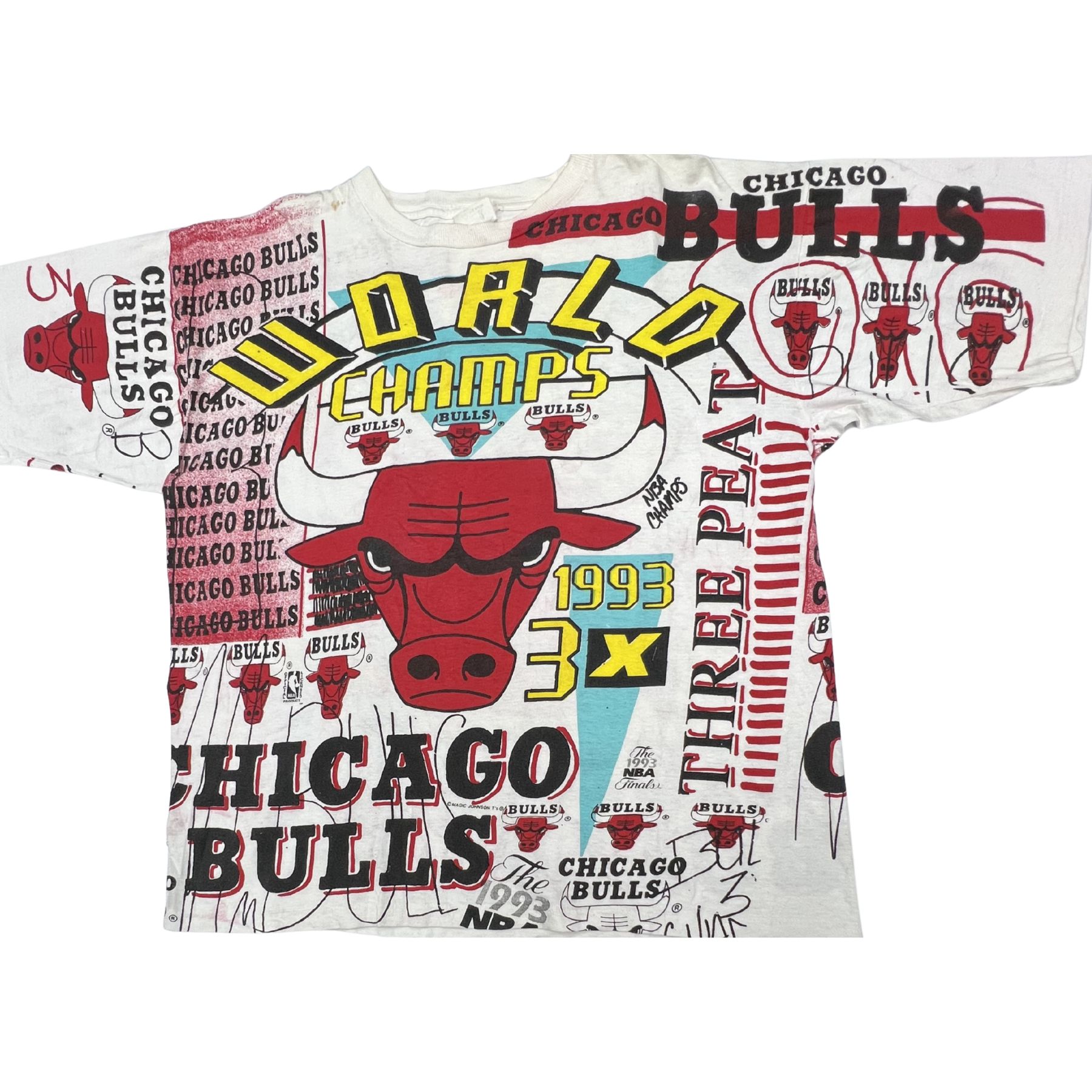 Vintage 1993 Chicago Bulls World Champs AOP T-Shirt Magic Johnson T’s XXL