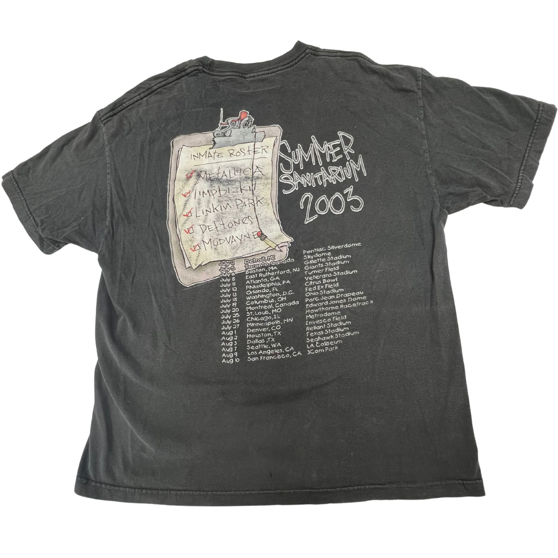 / Vintage 2003 Metallica Summer Sanitarium Tour T‑Shirt Multi‑Band Graphic