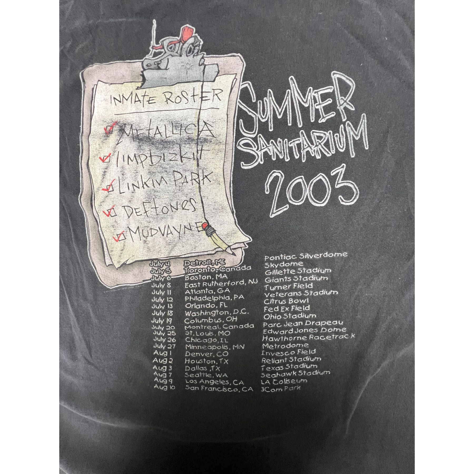 Vintage 2003 Metallica Summer Sanitarium Tour T‑Shirt Multi‑Band Graphic quantity
