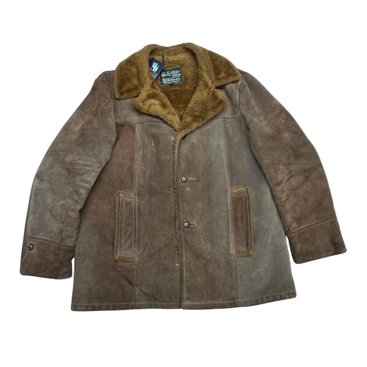 Vintage Men’s Brown Sears Suede Coat with Faux Fur Lining – Size 42
