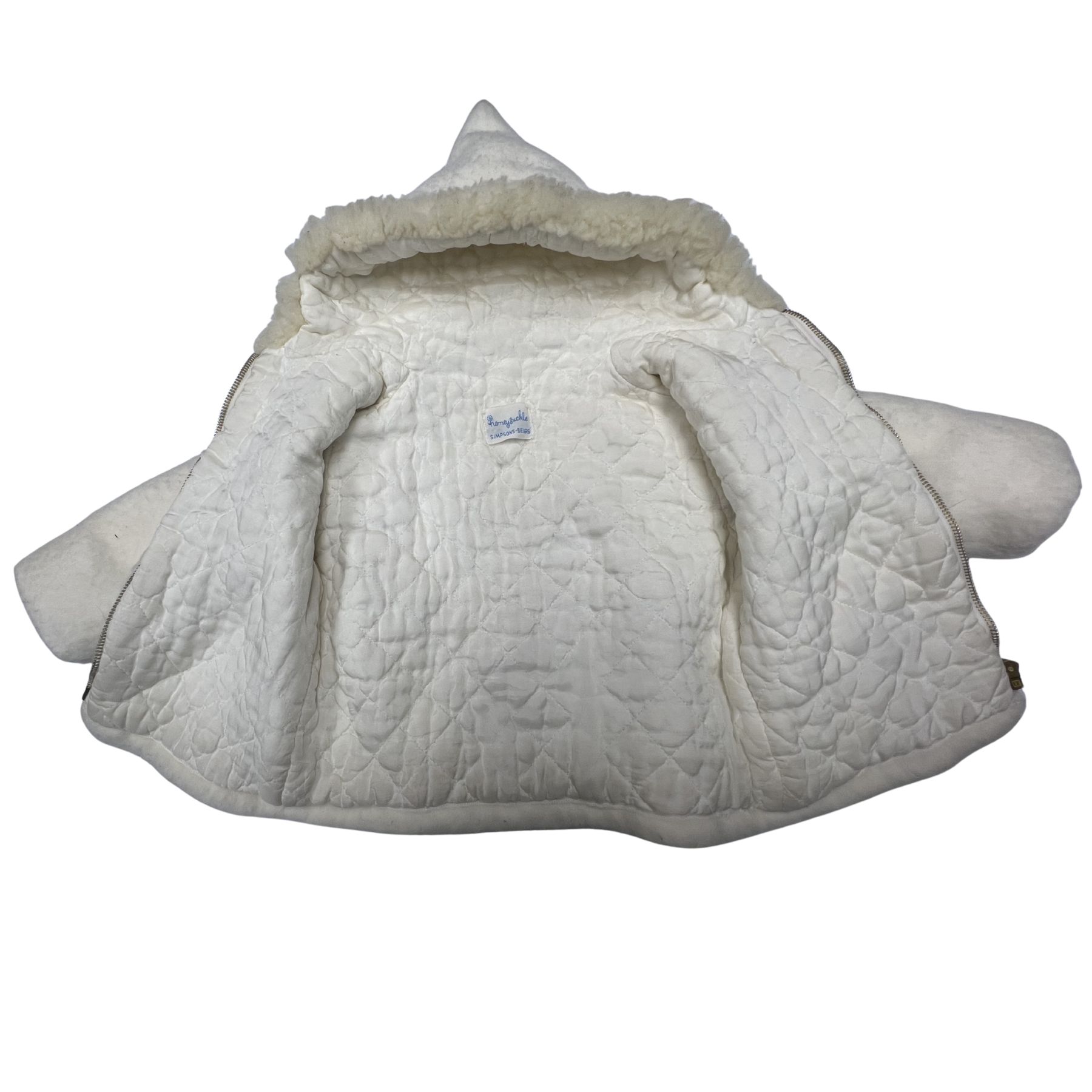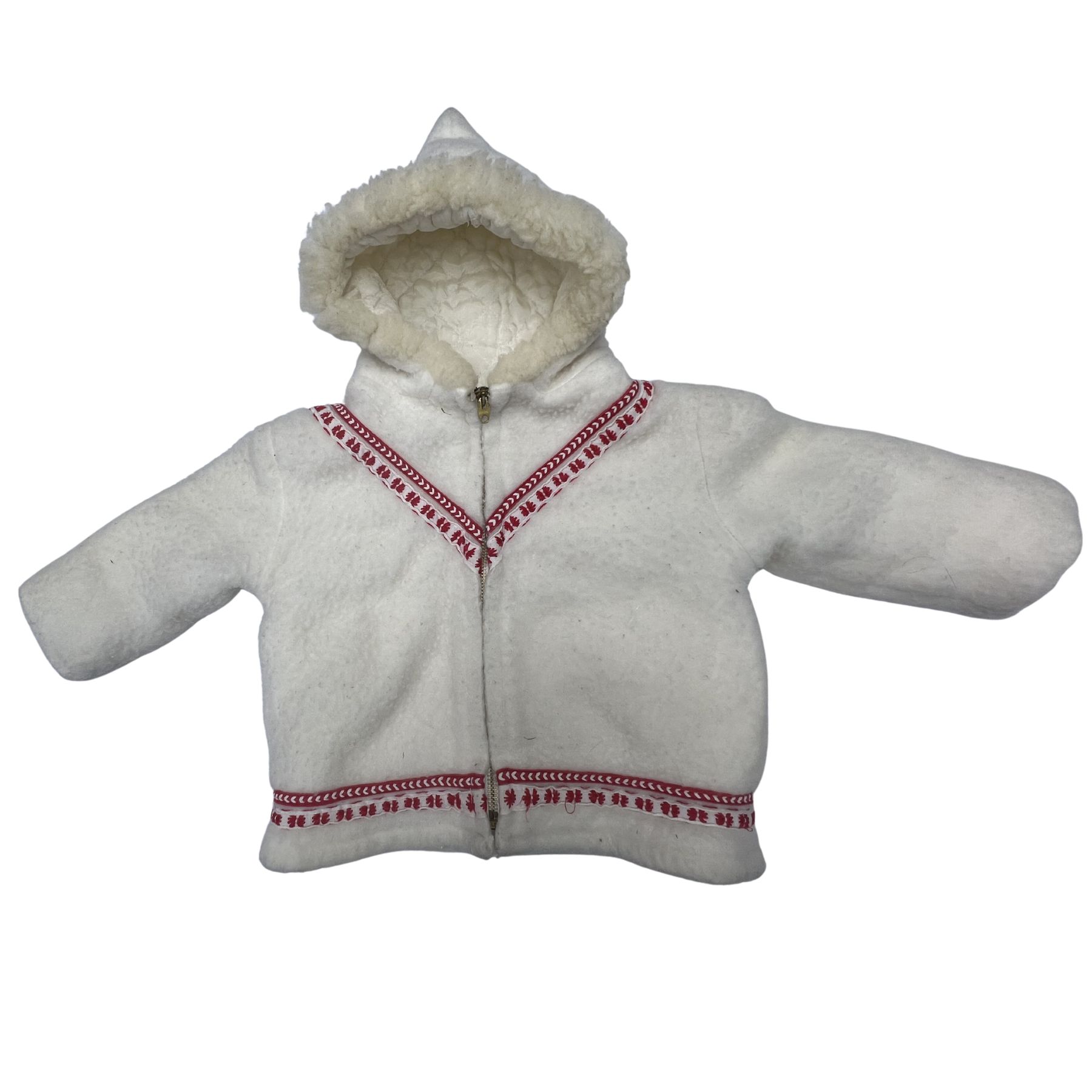 Vintage Nordic White Wool-Style Hooded Jacket with Red & White Embroidered Trim quantity
