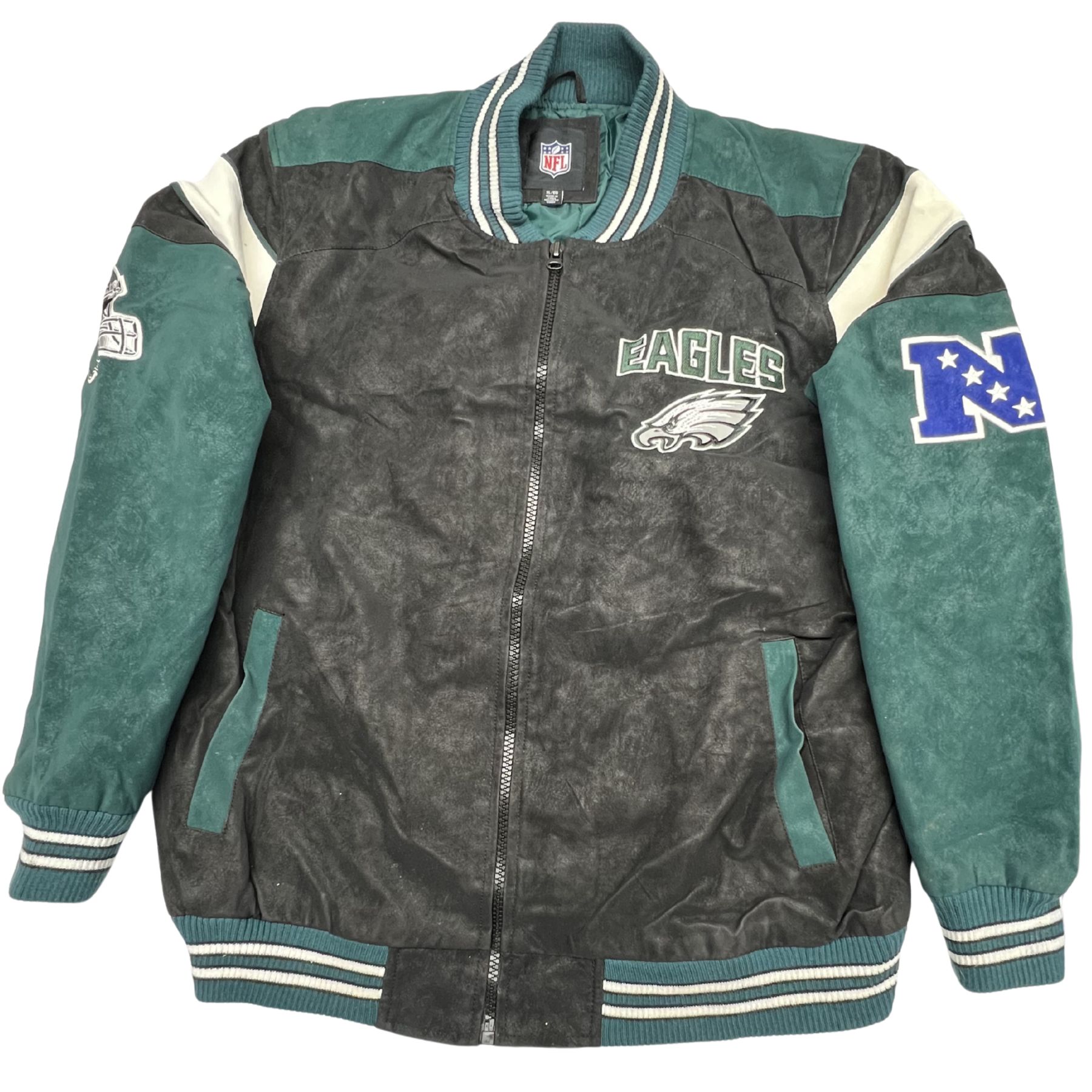 Vintage Philadelphia Eagles Suede Varsity Jacket NFL Letterman Retro Coat XL