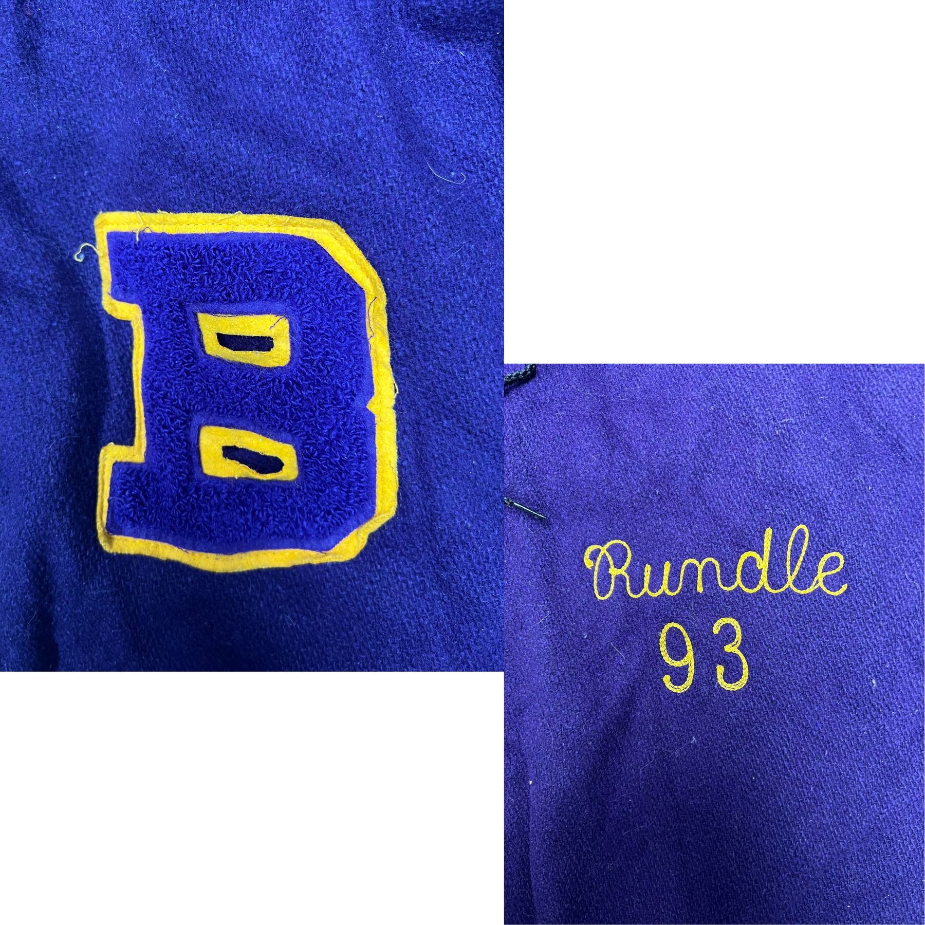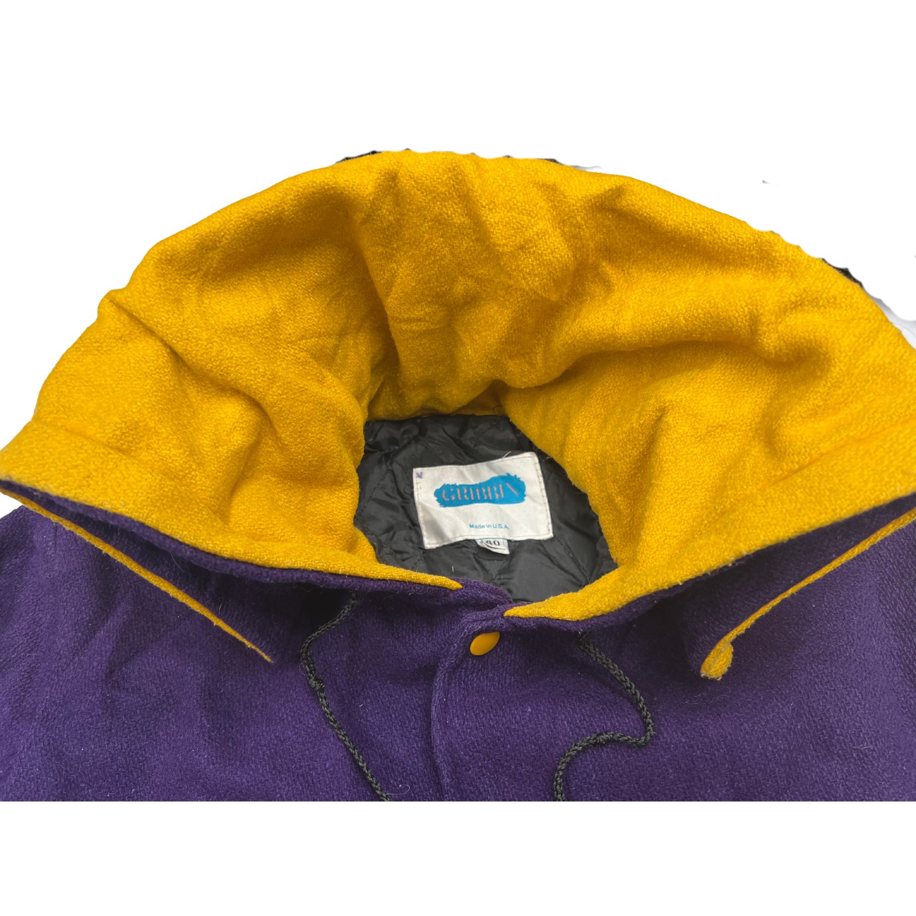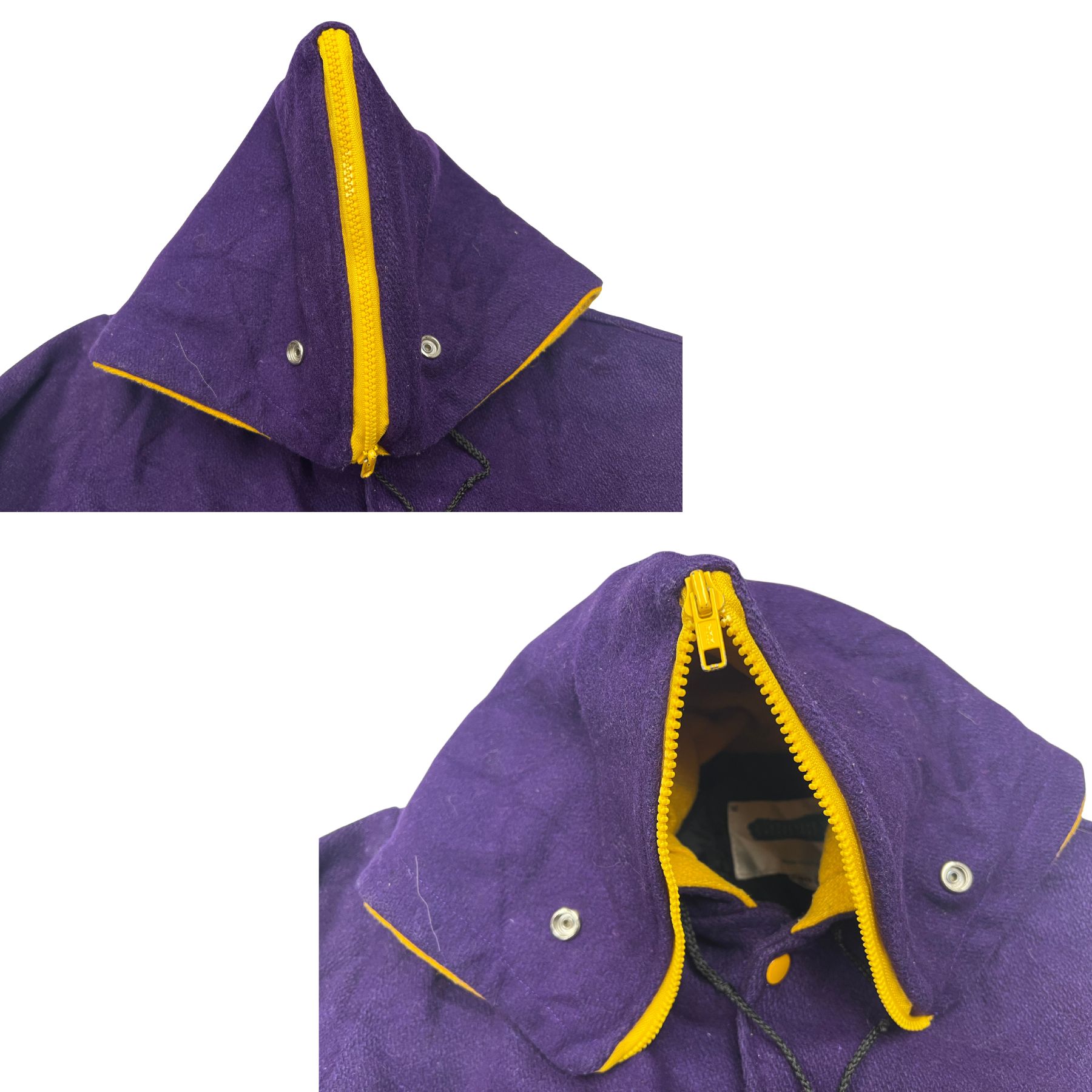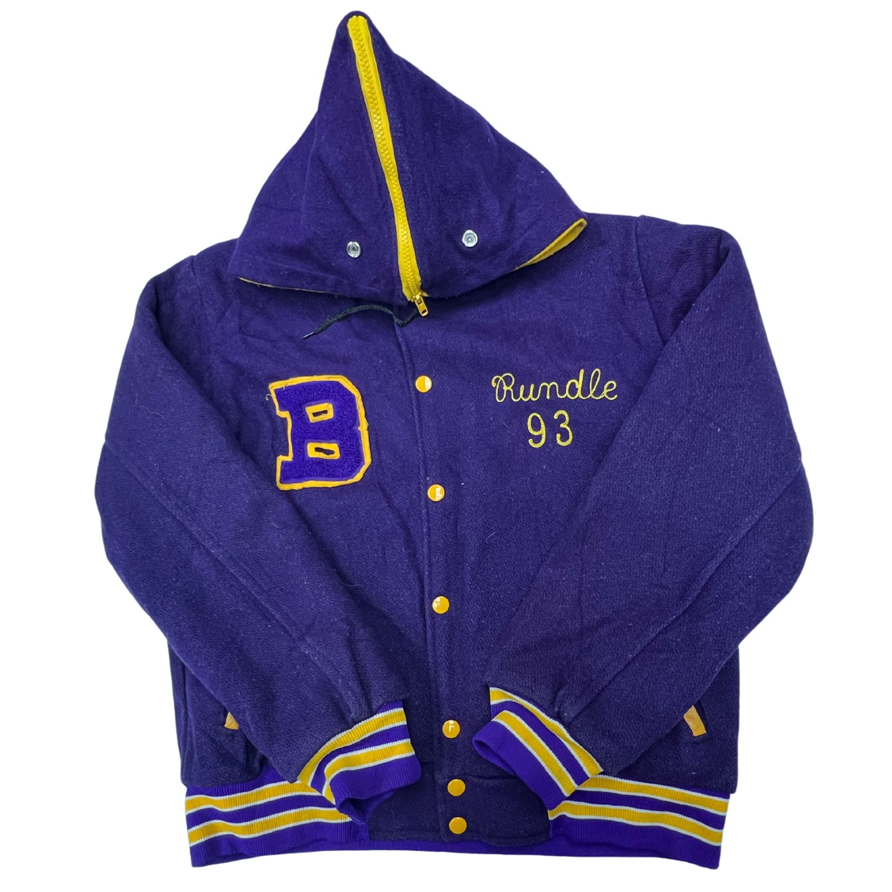 Vintage Purple Varsity Letterman Jacket Sailor Hood Zip B Patch Fleece size 40