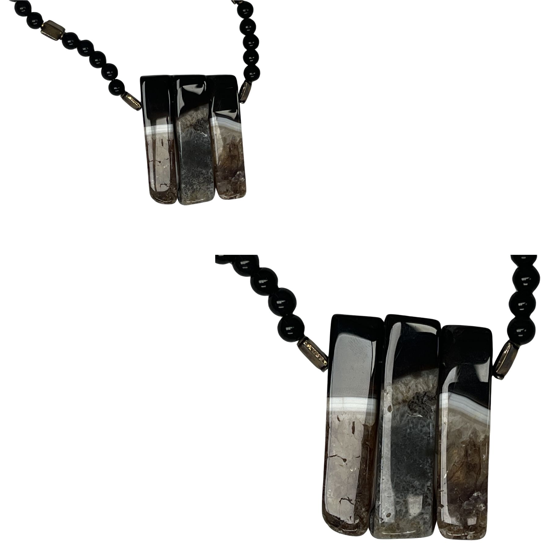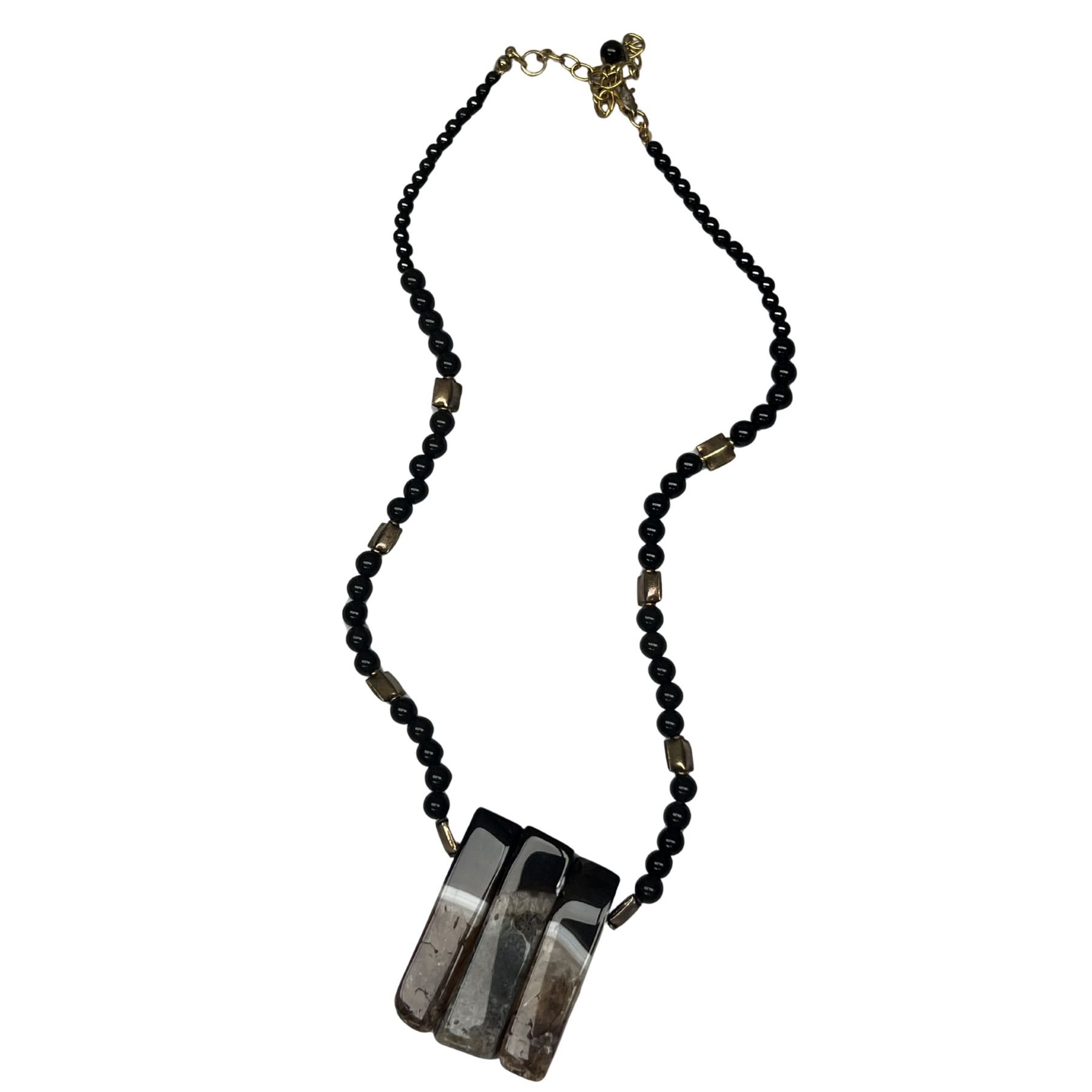 Vintage Tiger’s Eye Triple Rectangle Pendant Onyx Bead Necklace Statement quantity